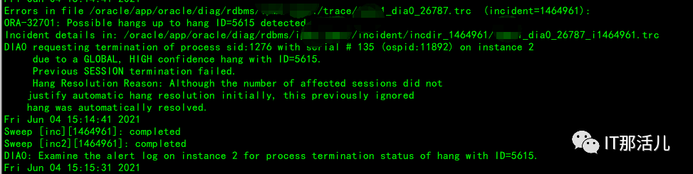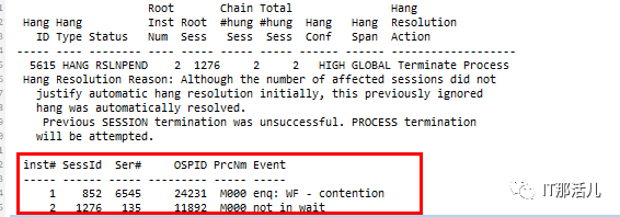 节点1 flush AWR相关数据,有个wait event: enq: WF – contention,节点2有个wait event: not in wait,通过SessId,Ser# 可以查询到执行的问题sql和执行计划: