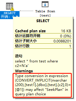 varchar到nvarchar的隐式转换,是黄色的,意思是Causes Scan,即忽略索引,