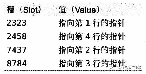 注意每个槽的编号是顺序的,但是数据行不是。现在,来看如下查 询:
