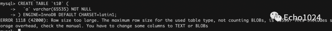 所以将varchar的长度降低到65532byte即可成功创建该表