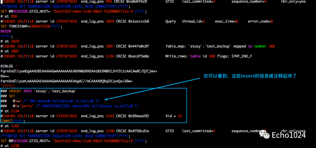 可以看到binlog中记录的是sql语句,记录这你对哪张表的id=xx的行做了什么样的修改。