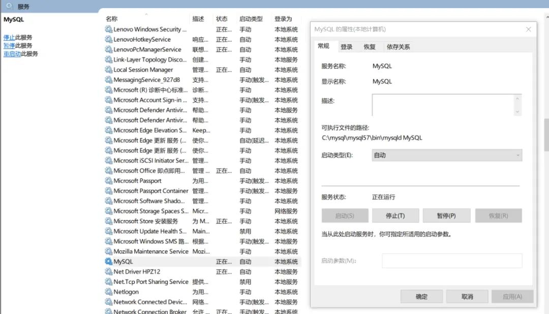 在计算机管理 —> 服务 中查看MySQL 是否启动 没有启动的话,还是需要使用管理员身份打开终端,进行启动 启动服务和停止服务的方式就是 net start mysql 和 net stop mysql 只要计算机中MySQL服务一直启动着,就可以直接登录进行使用mysql了