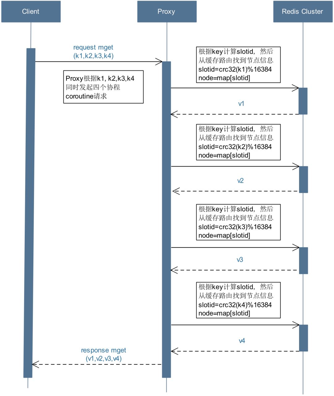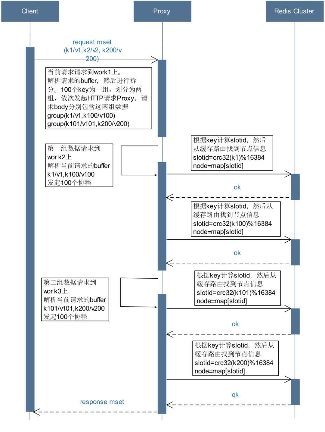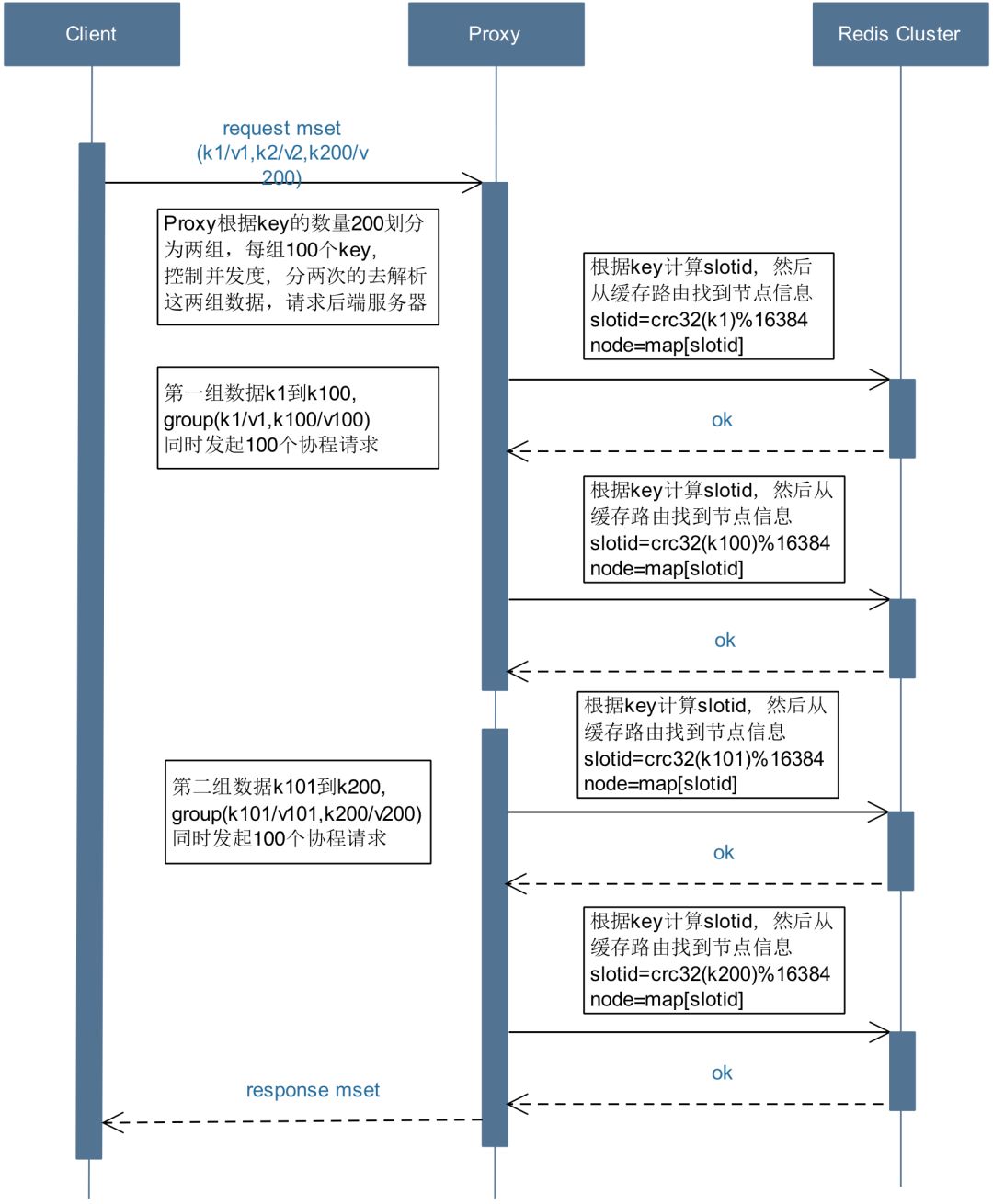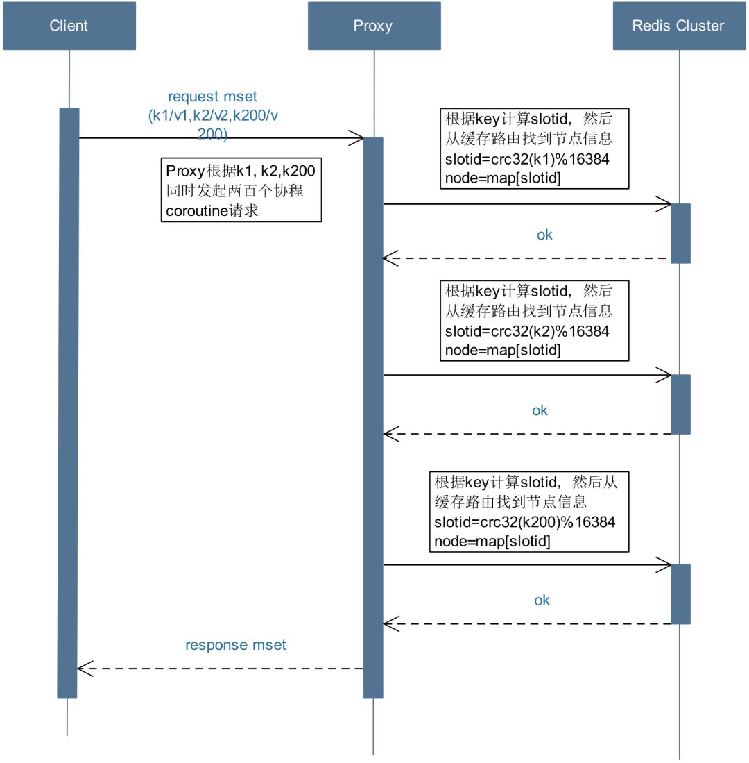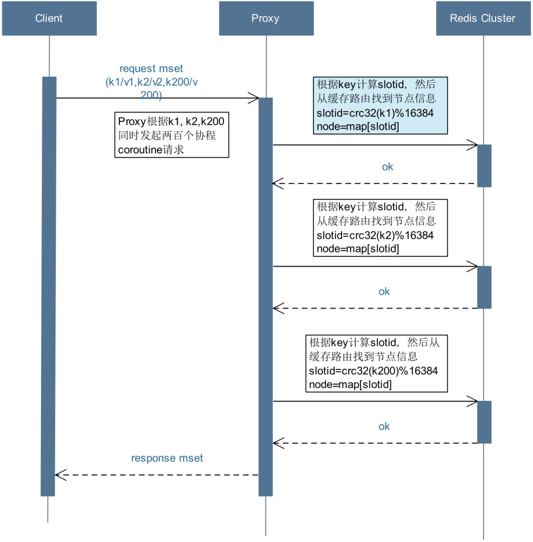 b) Proxy会解析这200个key,然后进行拆分分组以此来控制并发度。
