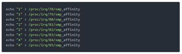 3.绑定网卡软中断到CPU0-2号上(注意这里的echo 是十六进制)