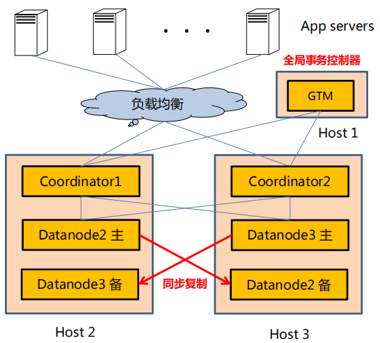 从上图可以看出Coordinator和datanode节点可以配置为多个,并且可以位于不同的主机上。只有Coordinator节点直接对应用服务,Coordinator节点将数据分配存储在多个数据节点datanode上。