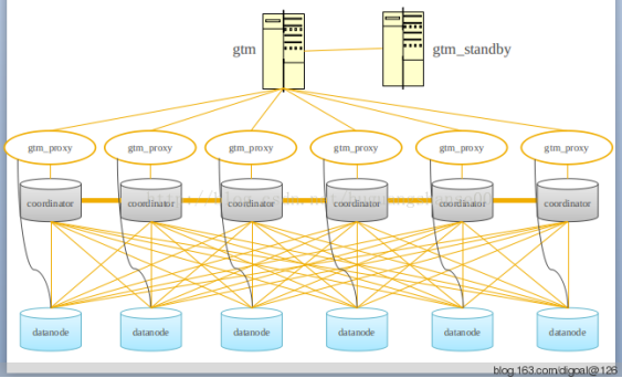 Postgres-XC主要组件有gtm(Global Transaction Manager) , gtm_standby , gtm_proxy, Coordinator 和Datanode。
