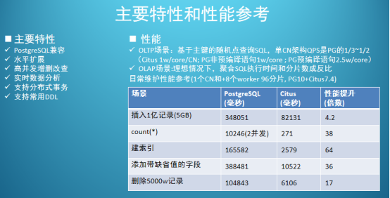 本截图引用2020年3月苏宁陈华军Citus的实践分享