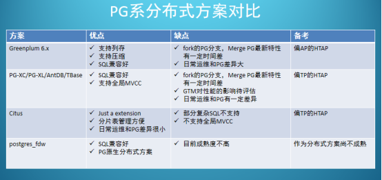 PostgreSQL与PGXC对比图(浙江移动谭峰分享)