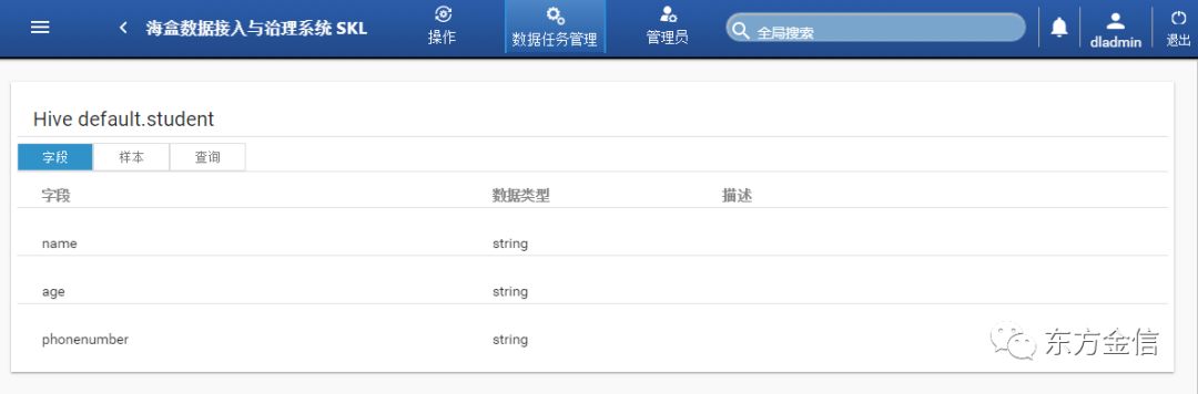 为解决这一问题,东方金信开发了海盒数据接入与治理系统(SKL),用户可以用海盒数据接入与治理系统(SKL)直接从传统结构型数据库(oracle/mysql)中获取数据,并存入Hive中。