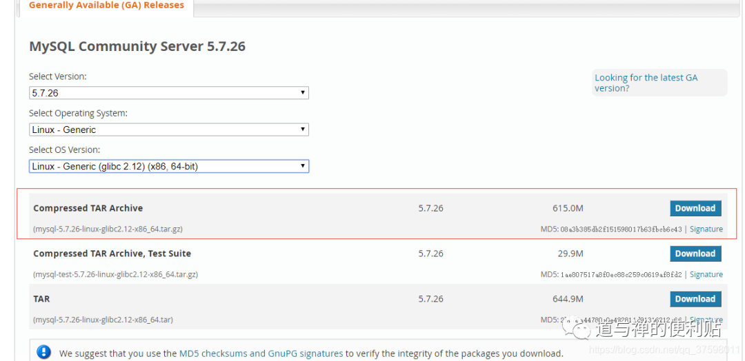 下载地址:https://dev.mysql.com/downloads/mysql/5.7.html#downloads