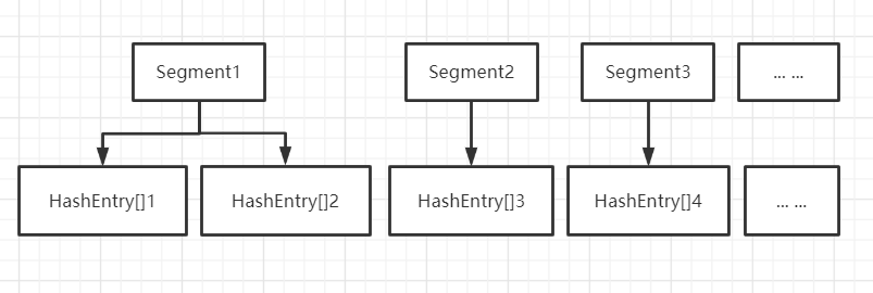 如上图,以ConcurrentHashMap来说一下分段锁的含义以及设计思想,ConcurrentHashMap中的分段锁称为Segment,它即类似于HashMap的结构,即内部拥有一个Entry数组,数组中的每个元素又是一个链表;同时又是一个ReentrantLock(Segment继承了ReentrantLock)。