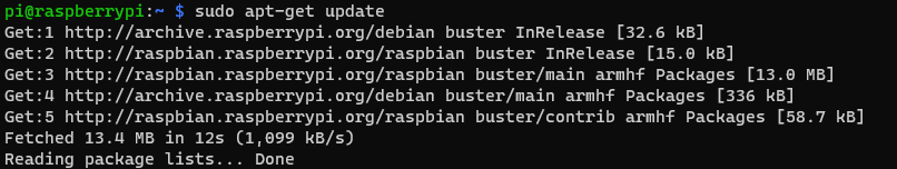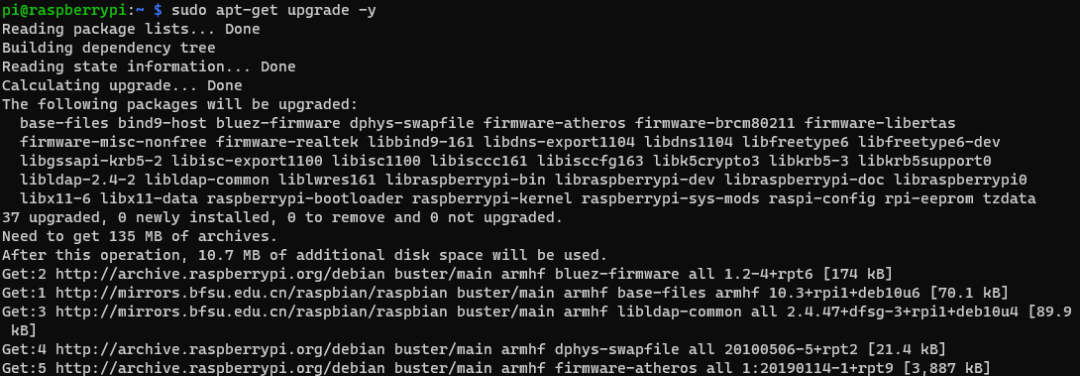 2.安装OMV之前需要更新一下树莓派系统,输入以下命令