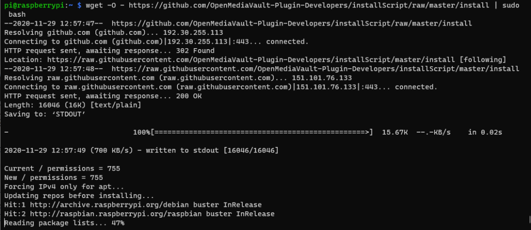 5.执行官方安装脚本安装OMV