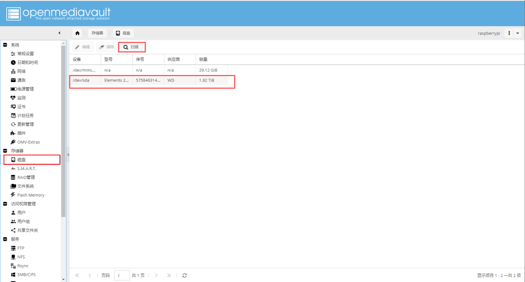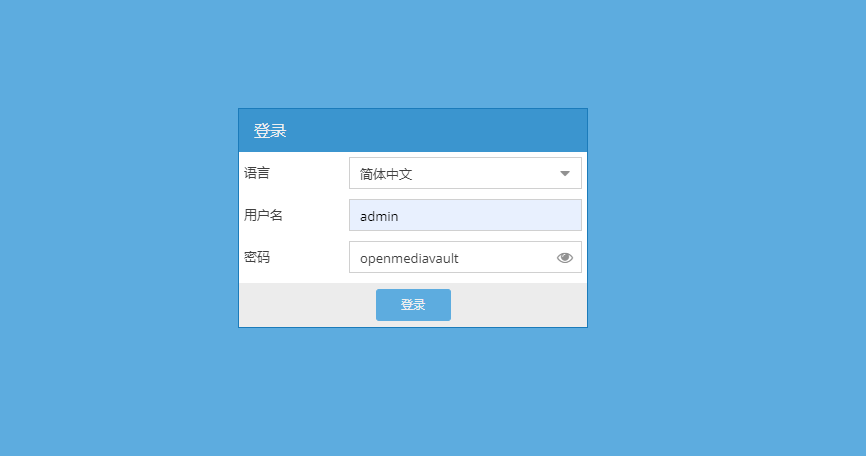 7.访问树莓派地址http://,输入账号密码(默认账户admin,默认密码openmediavault)