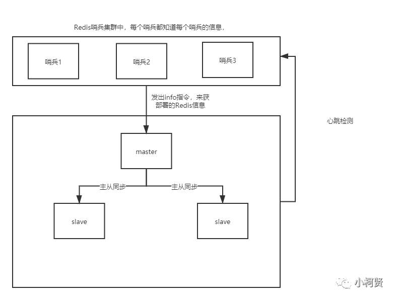 怎么知道master还存活呢?我们的哨兵会发送一个info指令获取到master的信息跟master之间保持心跳检测