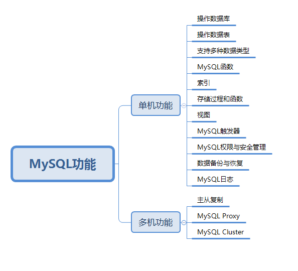 MySQL功能的思维导图如下:
