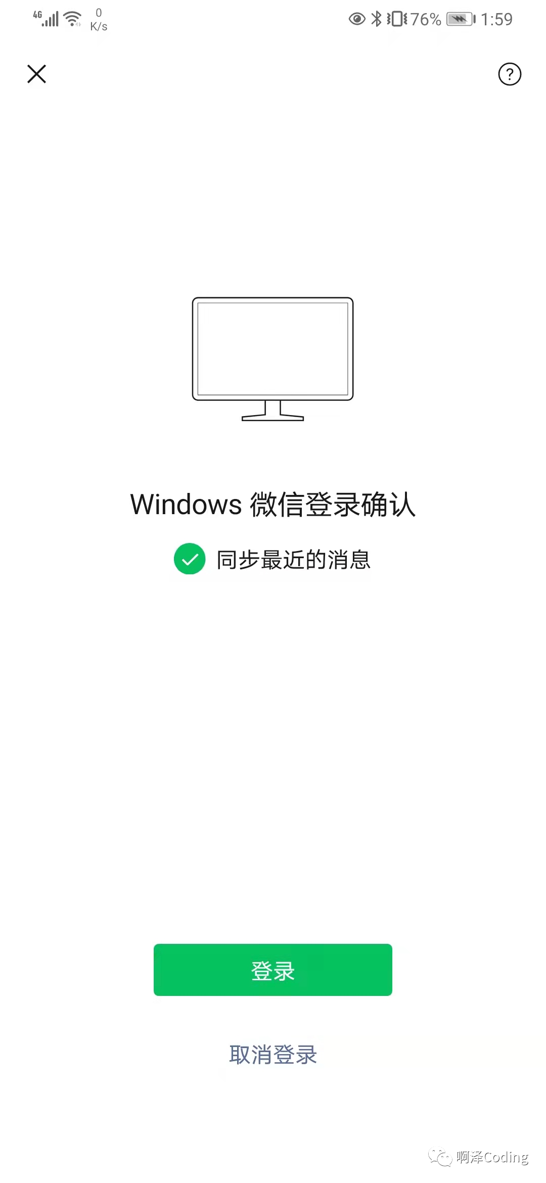 现在就来到了第二步,“ 如何证明 我 就是 我 ”,也就是向系统证明我是谁,可以类比于 “输入密码” 的环节。此时电脑微信 “阻塞” 到这个窗口,在等待手机微信授权登陆: