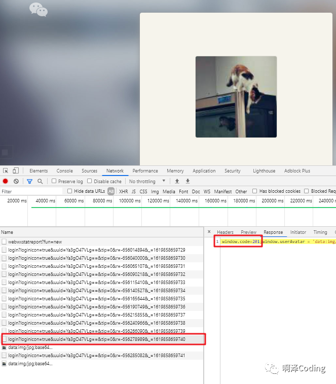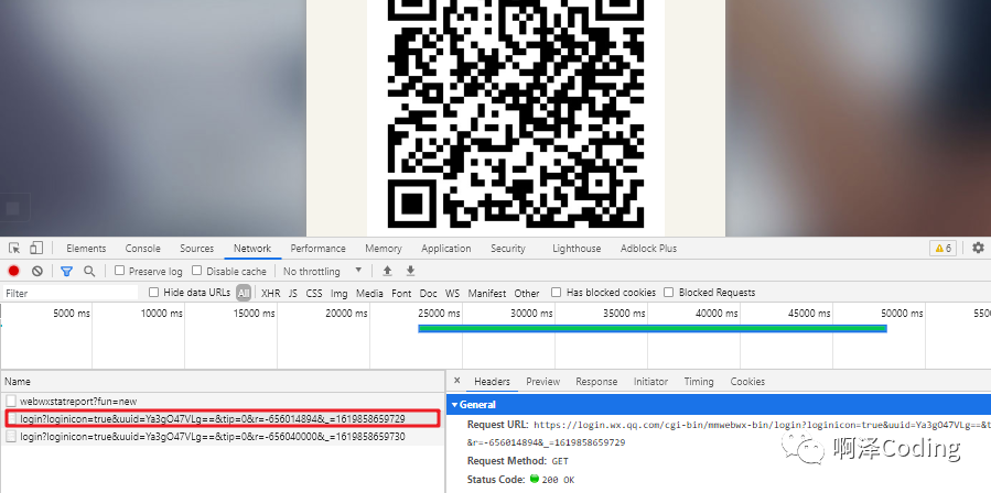 如果过了 30s 未扫码,界面就会更新二维码的信息,并返回错误码408