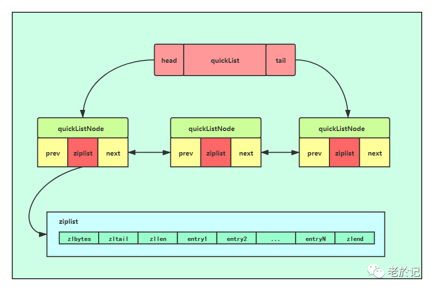 quicklistNode *tail; unsigned long count; /* total count of all entries in all ziplists */
