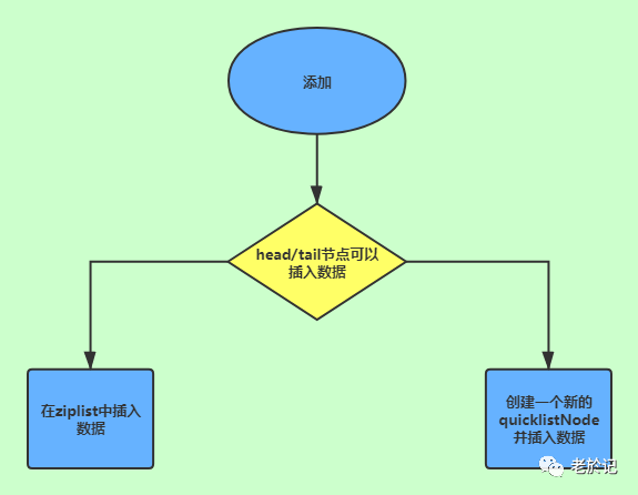 )。如果头节点(或尾节点)上ziplist太大了,那么新创建一个quicklistNode节点(对应地也会新创建一个ziplist),然后把这个新创建的节点插入到quicklist双向链表中。