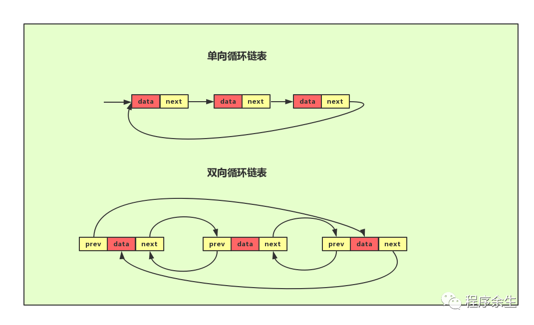 顾名思义。循环链表与单、双链表不同的是其呈环状,单循环链表中其尾节点并非指向NULL而是指向头结点。双循环链表中其头节点的前驱指针指向尾节点,尾节点的后继指针指向头结点。循环链表的优势在于链尾到链头,链头到链尾比较方便适合处理的数据具有环型结构特点。