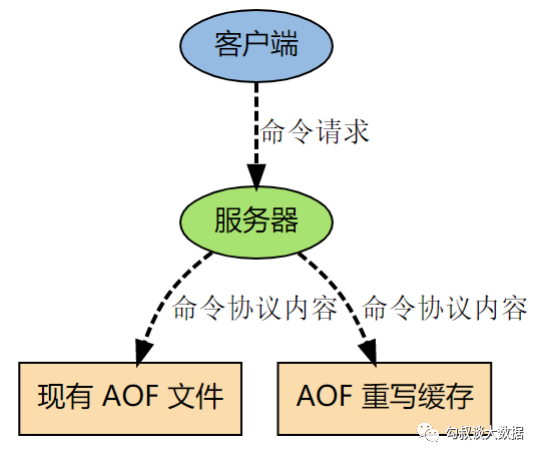 缓存追 加:AOF 程序根据接收到的命令数据,将命令转换为网络通讯协议的格式,然后将协议内容追加到服务 器的 AOF 缓存中。