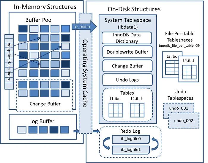 物理上主要由系统用户数据文件,日志文件组成,数据文件主要存储MySQL字典数据和用户数据,日志文件记录的是data page的变更记录,用于MySQL Crash时的恢复。