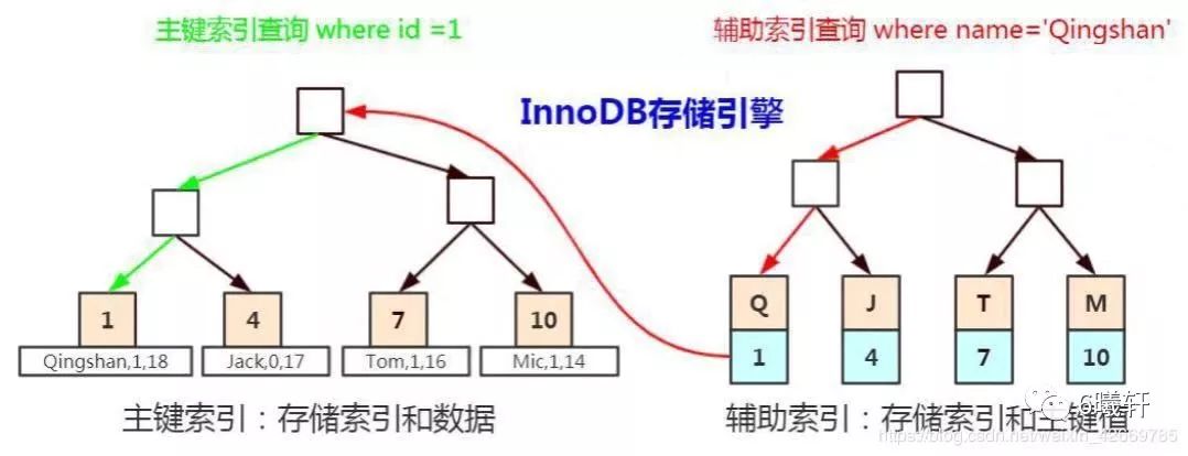 InnoDB 中,主键索引和辅助索引是有一个主次之分的。