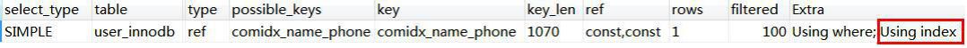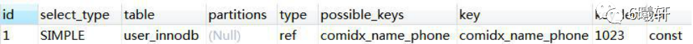 EXPLAIN SELECT * FROM user_innodb WHERE name= '权亮' AND phone = '15204661800';