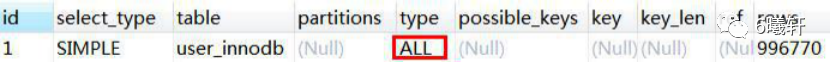EXPLAIN SELECT * FROM `user_innodb` WHERE name = 'Jack';