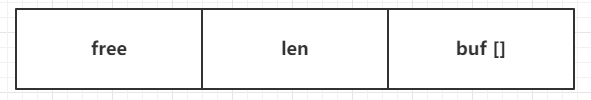 Redis 采用一段连续的内存空间来存储 SDS 结构,具体结构如下图所示,free 代表指这个字符串剩余可用空间的长度,而 len 代表这个字符串已占用空间的长度,buf [] 就是字符数组。
