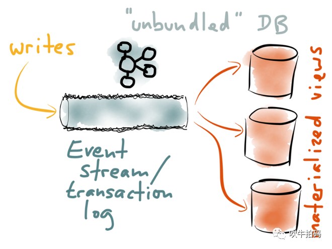 但是,在加入Kafka之后,一切都不一样了。上一期文章《22.神说,kafka其实是个数据库》中,简单提到过这一点,当时我把它称为事件流(event stream)。这里重新引用一下:
