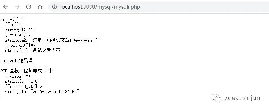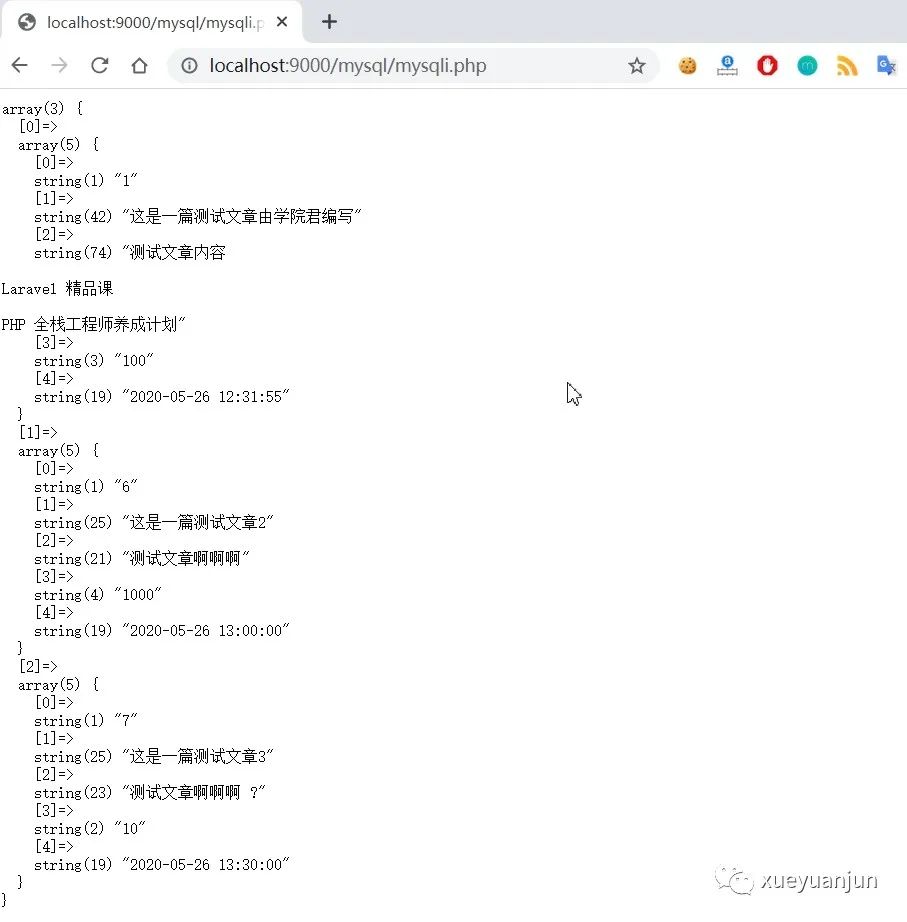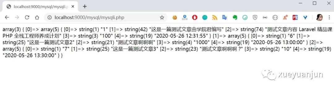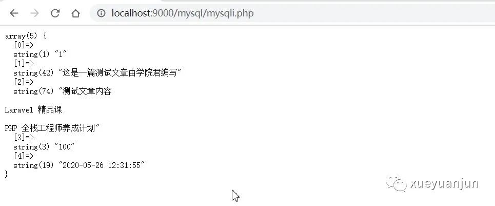 在浏览器中访问 http://localhost:9000/mysql/mysqli.php