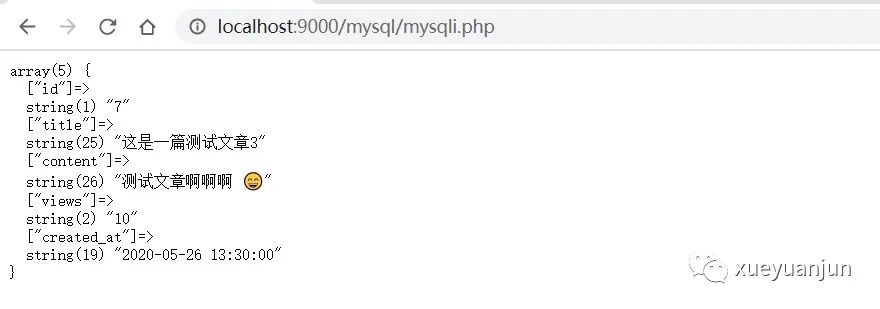 可以看到返回结果已经是一个一维数组了,只包含一条记录。如果想要返回关联数组结果,需要通过一个新的函数 mysqli_fetch_assoc 函数来实现: