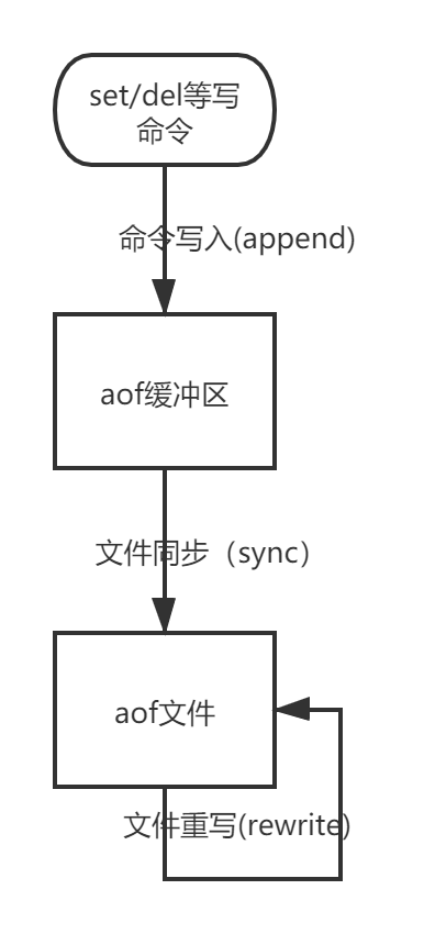 aof方式持久化是使用文本协议将每次的写命令记录到aof文件中,经过文件重写后记录最终的数据生成命令,在redis启动时,通过执行aof文件中的命令恢复数据。