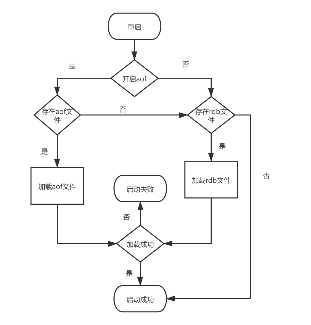 Redis支持单独启动RDB或者单独启用AOF,也支持同时启用RDB和AOF,redis重启时加载流程如下所示: