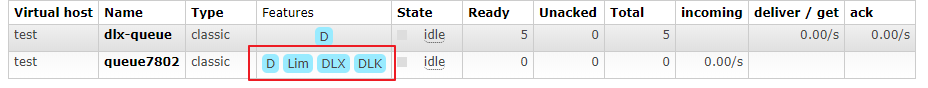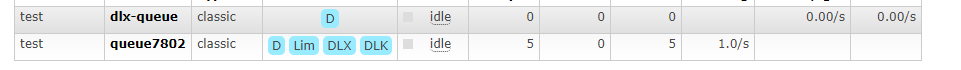 DLX:表示设置了死信交换机x-dead-letter-exchange参数