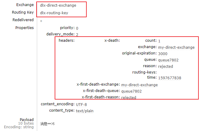 同时消息的headers中也会将进入死信队列的原因以及次数等进行说明