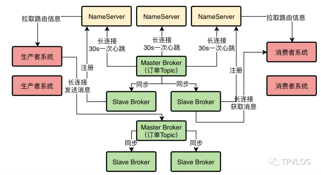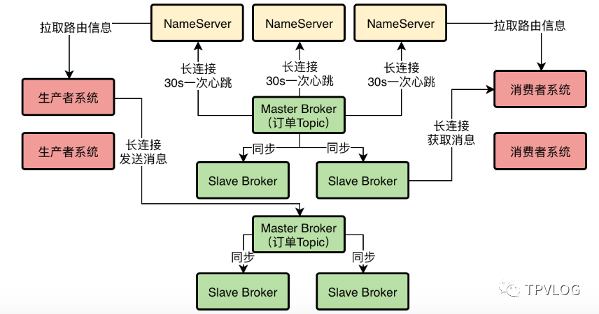 接着,我们就要利用生产者和消费者对已经部署好的RocketMQ进行压测了。回顾下系统的逻辑架构图: