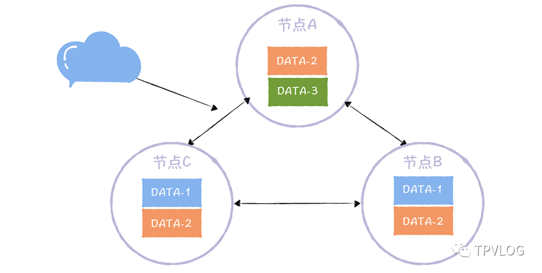 我这里以DATA-2为例解释下,为什么W+R>N时,一定可以读到最新的数据。首先,DATA-2的N=3,W=2,R=2,那么当写数据时,必然有2个节点要写成功;此时再读数据,即使读到了一个没有写过的节点,由于要读2个节点的值,另一个必然是写成功的节点,所以最终返回给客户端的还是最新的数据。