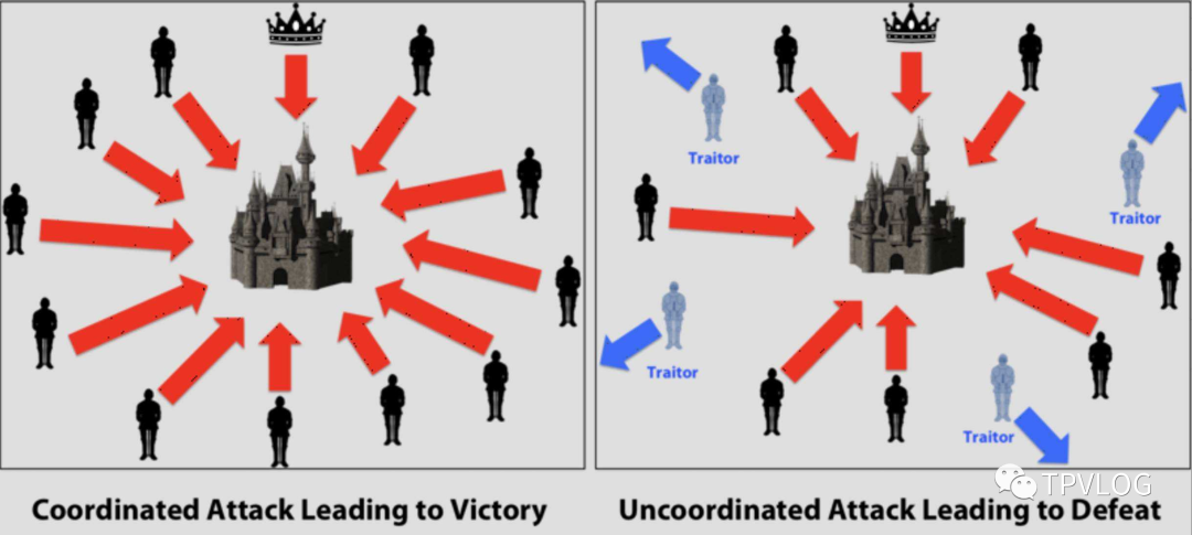 叛变的将军,你可以理解为出现故障并会发送误导信息的计算机节点;