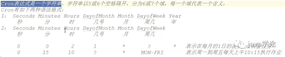 cron:通过表达式来配置任务执行时间