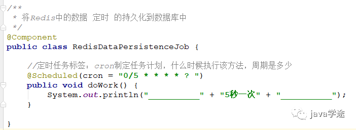 @Component@Scheduled(cron = "0/5 * * * * *")