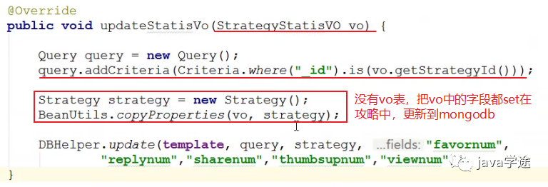 数据库中没有vo表,怎么更新vo,new 一个攻略对象把vo的属性封装进去,更新攻略表;