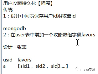 mongodb:在user表中增加一个攻略数组字段favors;或者设置一张表,usid favors字段