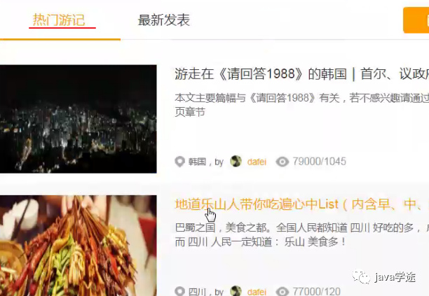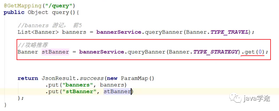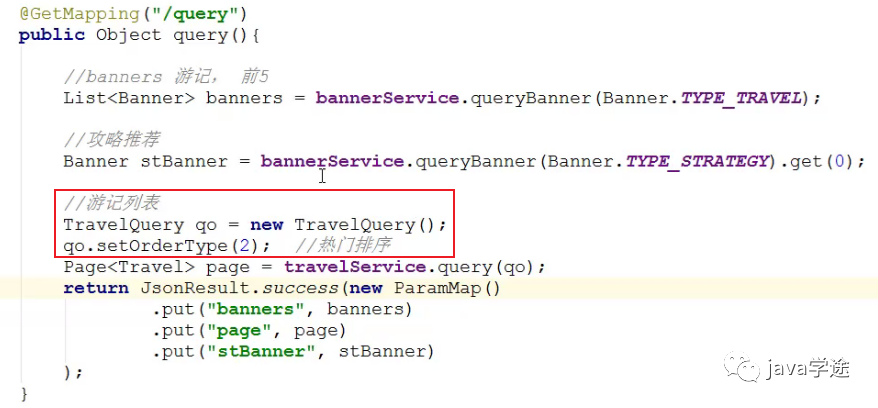 banner中显示的是游记,需要在首页中将游记的文章查出来