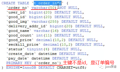 秒杀服务的服务端做了集群之后,每个服务注册到注册中心,用户通过负载均衡来访问到服务器。如果集群很多,那么压力就到了数据库这里,因为所有的请求都直接访问到额是数据库。数据量随着生产期的增加会不断增加,所以需要对表进行分库分表操作,不同的数据库不同的表,此时再用id做注解就不行了,id都是从1开始的。所以这里选择使用orderNo做主键。企业开发中有使用雪花算法(SnowFlake)来做主键进行分库分表。