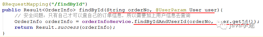 存在一个问题,通过id就可以查询订单信息了(这样订单信息不安全),查询的时候必须是当前用户查询的。