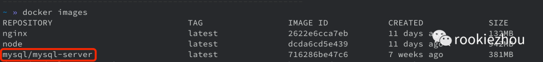 如果刚安装,之前没有从网站拉过镜像的话,打印出来的镜像应该是空的,我这里是已经拉过一些镜像了。由于我们要运行 MySQL,我们需要从 Docker Hub 上拉取 mysql-server 镜像, 执行一下命令拉取 mysql-server 的最新版镜像: