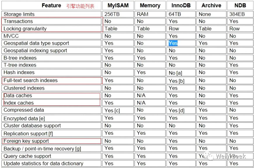 | MyISAM | YES | MyISAM storage engine | NO | NO | NO |